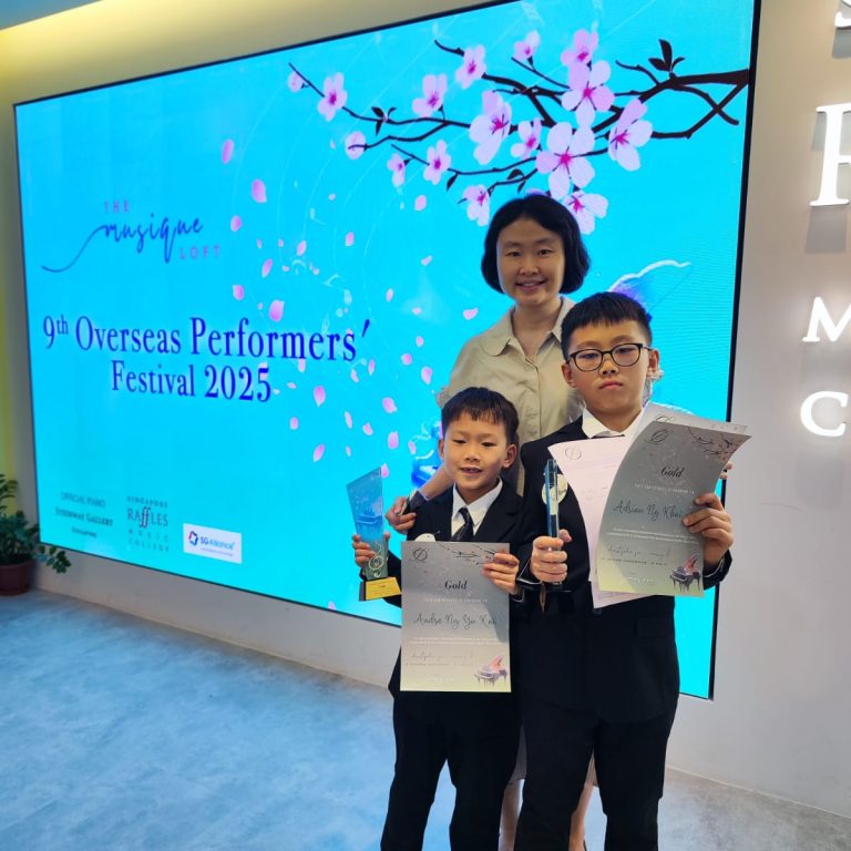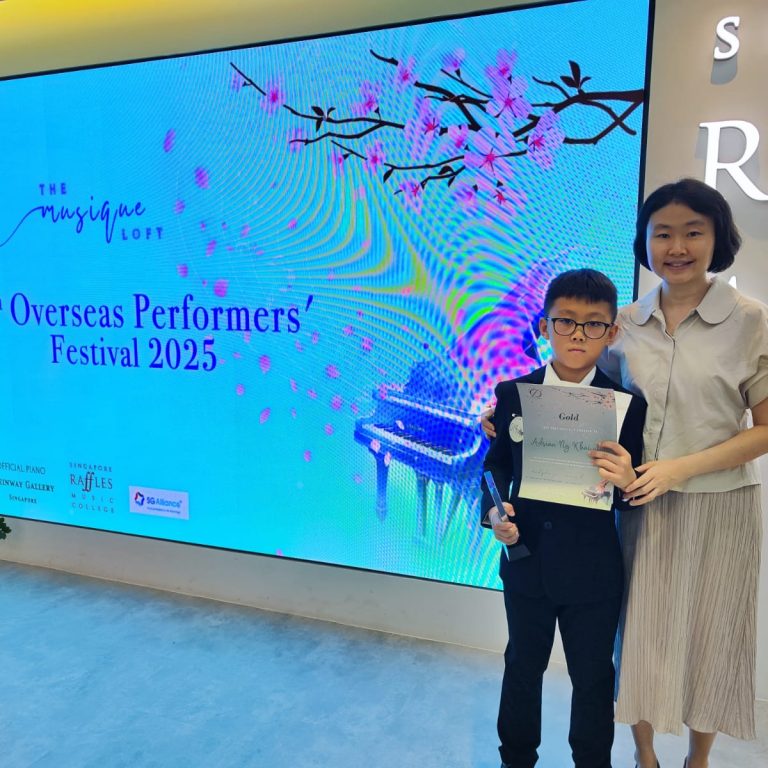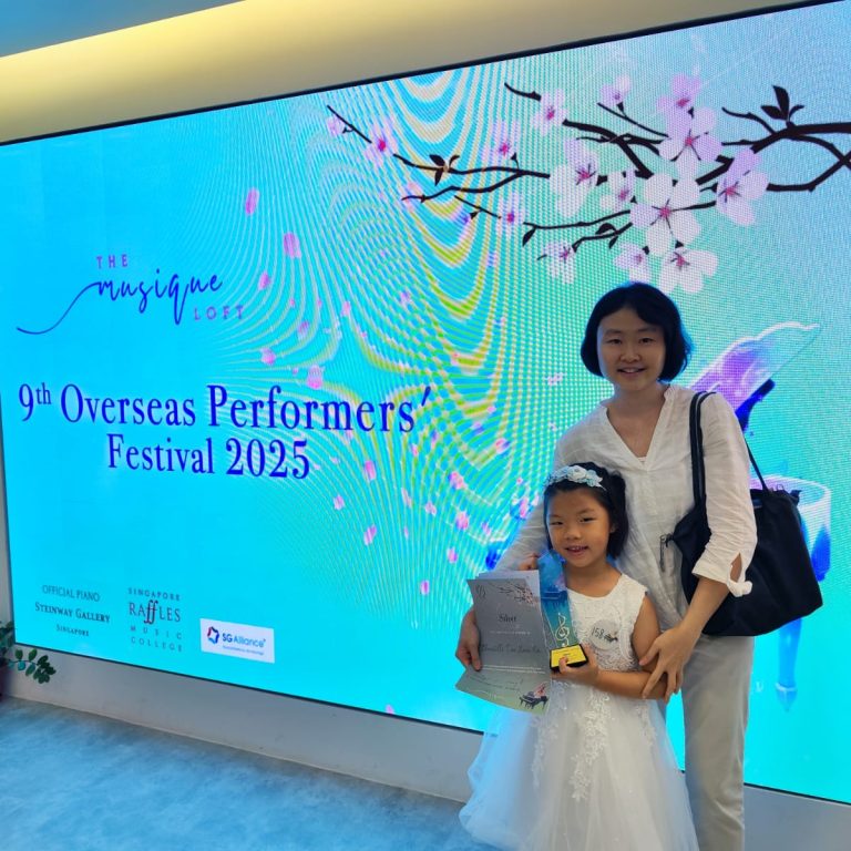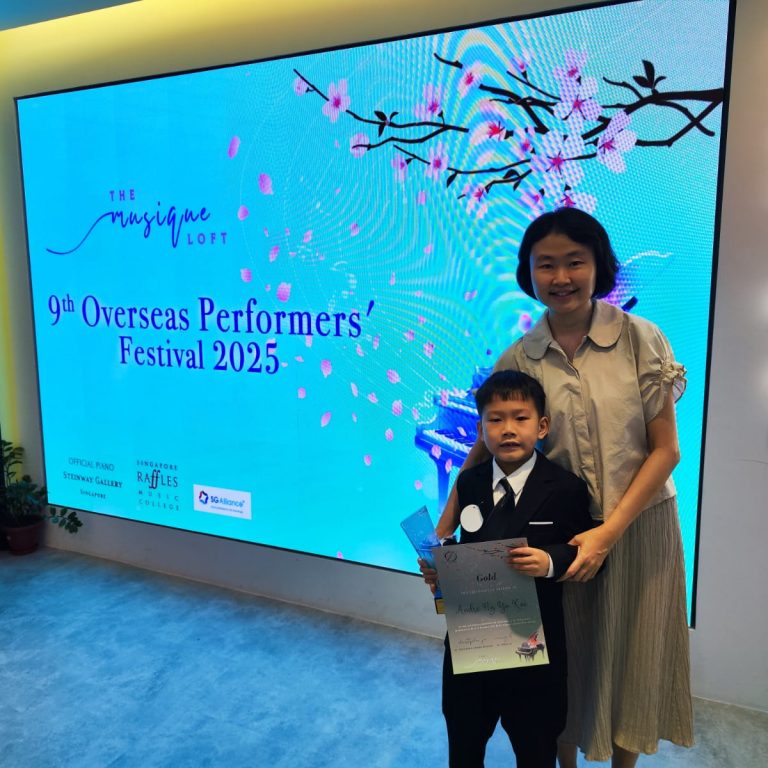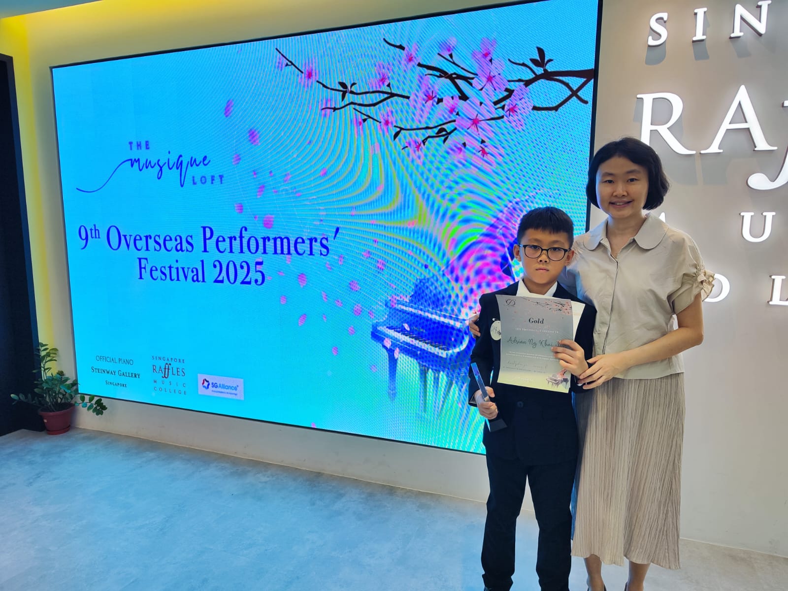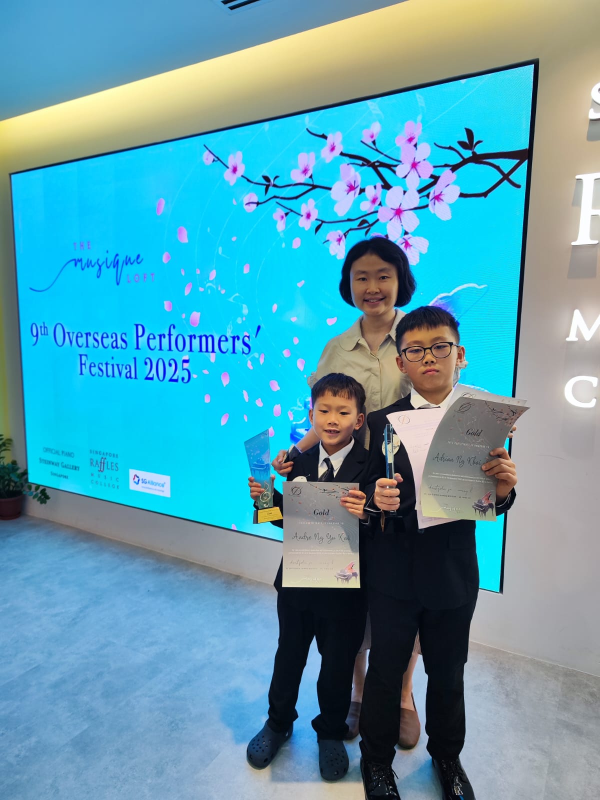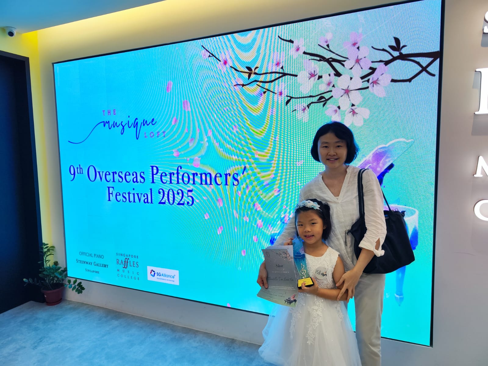 Students Achievement Students Achievement 2025: The Musique Loft, 9th Overseas Performers’ Festival 2025 2025: 12th Asia Arts Festival 2025 2024: The Musique Loft 8th Overseas Performers’ Festival 2024 2023: The Musique Loft 7th Overseas Performers’ Festival 2022: The Musique Loft 6th Overseas Performers’ Festival 2021: The Musique Loft 5th Overseas Performers’ Festival 2020: The Musique Loft 4th Overseas Performers’ Festival 2019: 4th Singapore Raffles Cultural & Arts Festival 2019: ARS NOVA Performing 2019: La Pianista Piano Competition Singapore 2019: 2nd International Piano Grand Finals 2018: Singapore Performing Arts Festival 2025: The Musique Loft, 9th Overseas Performers’ Festival 2025 2025: 12th Asia Arts Festival 2025 2024: The Musique Loft 8th Overseas Performers’ Festival 2024 2023: The Musique Loft 7th Overseas Performers’ Festival 2022: The Musique Loft 6th Overseas Performers’ Festival 2021: The Musique Loft 5th Overseas Performers’ Festival 2020: The Musique Loft 4th Overseas Performers’ Festival 2019: 4th Singapore Raffles Cultural & Arts Festival 2019: ARS NOVA Performing 2019: La Pianista Piano Competition Singapore 2019: 2nd International Piano Grand Finals 2018: Singapore Performing Arts Festival The Musique Loft, 9th Overseas Performers' Festival 2025 Proud of my students who participated in The Musique Loft 9th Overseas Performers’ Festival 2025 (7–10 Nov 2025) and brought home awards through their inspiring performances and dedication.